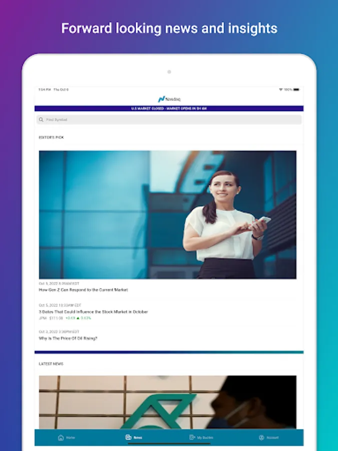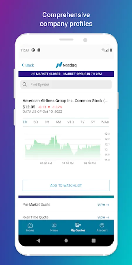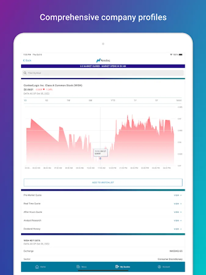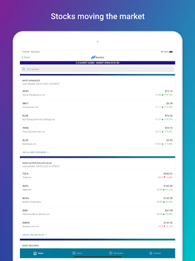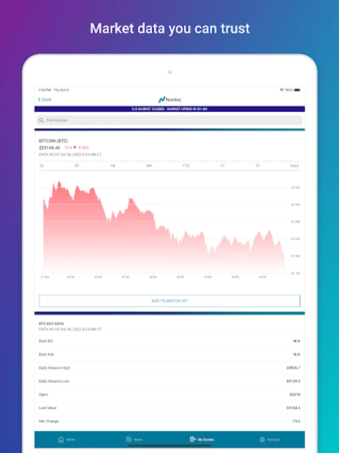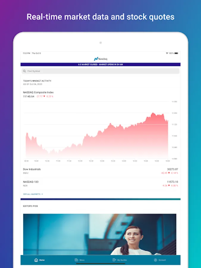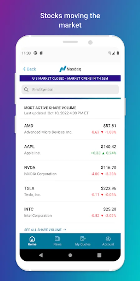 Thank you for using the Nasdaq Markets app. We’d love to hear your suggestions. Please send enhancement requests to Webmanagementgroup@nasdaq.com
