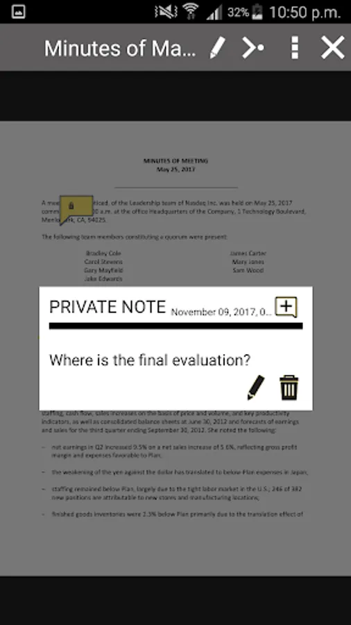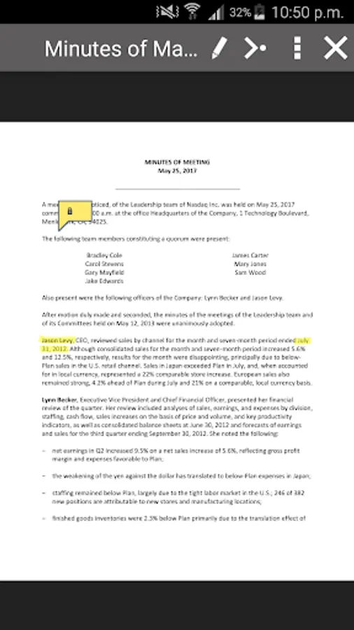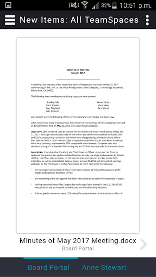 Between meetings, Nasdaq Boardvantage offers the interactive functionality necessary to continue collaborating with eSignatures, Approvals, Surveys and secure Email. Because ease-of-use is paramount, the Nasdaq Boardvantage experience is calibrated for Android.