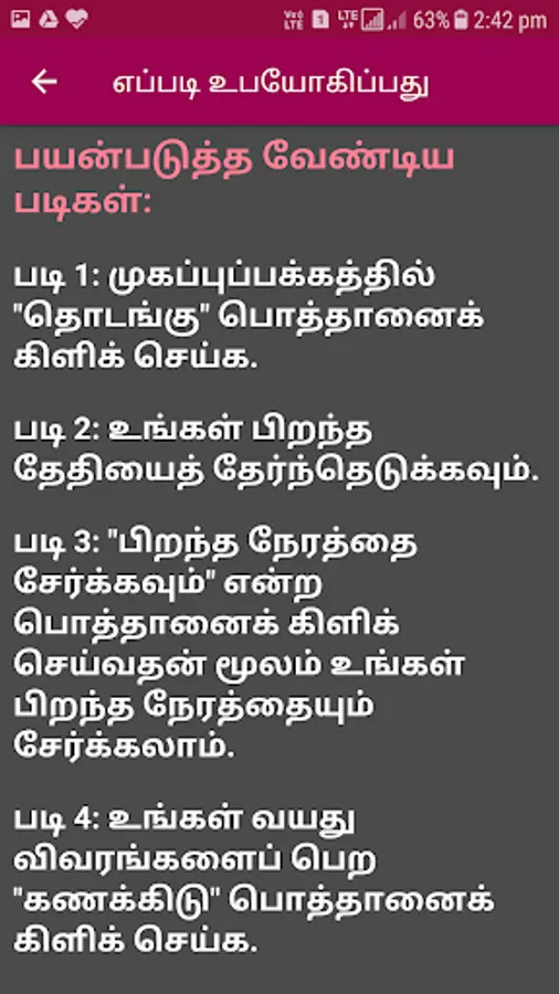 This is the first Age Calculator in Tamil app on Playstore. With the help of this app you can calculate your age in terms of years, months, weeks, days, hours, minutes and even in seconds. You can calculate your age from birth date or between any two dates.