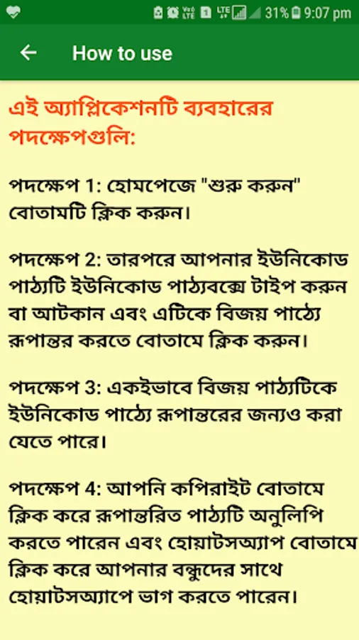 In this app you can easily convert Unicode text to Bijoy text fonts and Bijoy text fonts to Unicode text, which can be copied and shared anywhere.