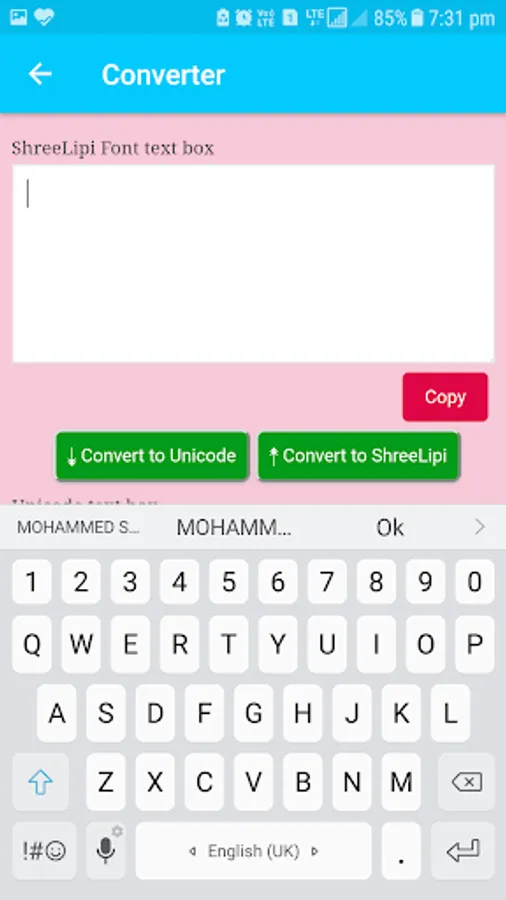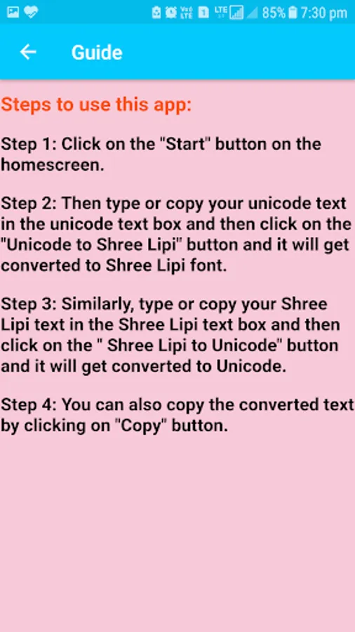 Its very easy to use this app and you can easily convert Unicode text to Shree Lipi font and Shree Lipi font to Unicode text.