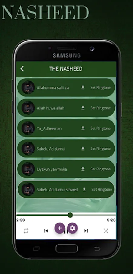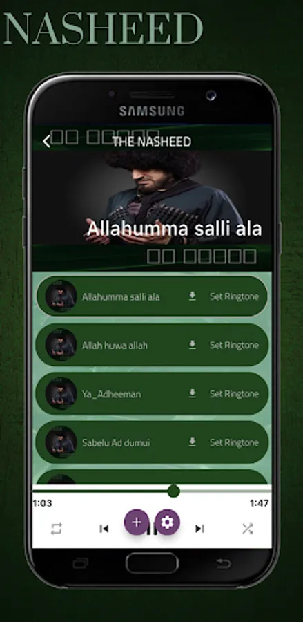 In addition, the application allows users to share nasheeds with their friends and family by sharing links to them on many different social networks. The application also allows users to create custom playlists of their favorite nasheeds, and users can easily change the order of nasheeds in their playlists.