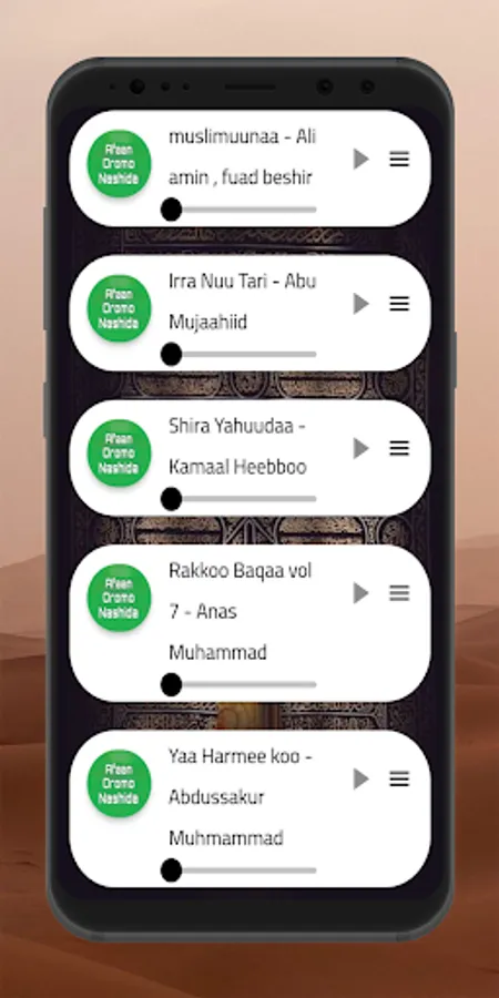 Welcome to the application of Nashida Afaan Oromo, which has many different features for you. Islamic songs are a wonderful art that urges the recipient to obey God and His Messenger and the wonderful Islamic morals. These nasheeds have become famous in Islamic countries over the past years because of their beautiful lyrics. If you want to know what love you and others have for God, see the love of the Qur'an from your heart, read the Qur'an and meditate on it. Feel the angels repeating behind you and listening to you. The Holy Quran is our book.