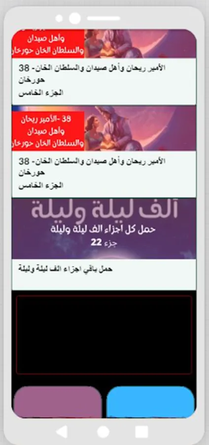 The application of the series One Thousand and One Nights is an Egyptian series that tells the stories of the Arabian Nights, known as the stories of One Thousand and One Nights, which are famous Arab stories throughout time in the East and the West. The Thousand and One Nights has many stories and tales that Scheherazade told King Shahriar over the course of a thousand nights in order to escape from murder at the hands of pleasure. Sayyaf, you can consider the Thousand and One Nights application like an audio book that contains bedtime stories that listeners love. It is true that they are not real stories, but we as humans enjoy this type of fairy tale, so you will not find these stories on Lodinet or the site of a love story or anywhere else. You absolutely hear it, and one of the advantages of the application of the series One Thousand and One Nights is that it is without a net and it consists of 22 parts distributed over 22 applications that you can download respectively.