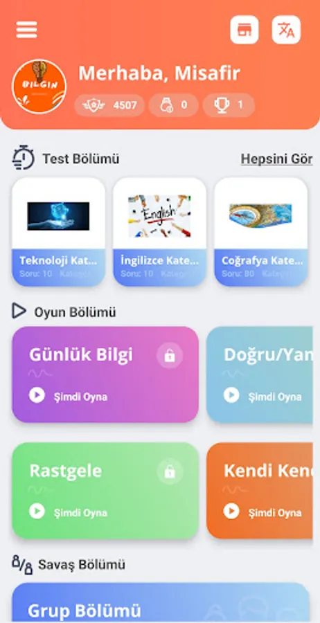 With Bilgin - Quiz application, you can test your knowledge level and learn new information.