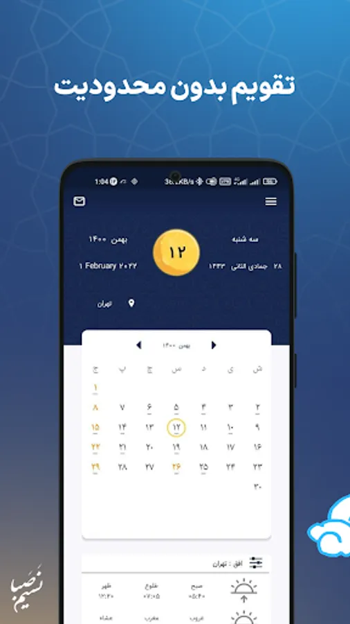 Nasim Saba Persian Calendar 1401 An application including religious times in more than 1200 cities and villages of Iran with the ability to play