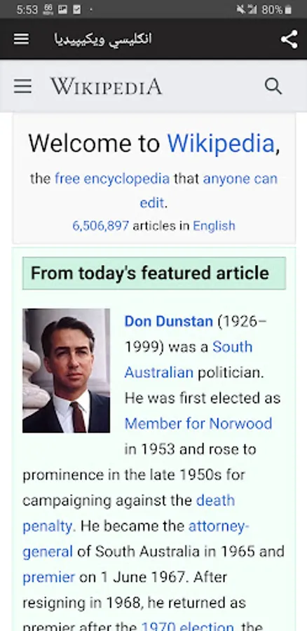 Explore feed: Recommended and constantly-updating Wikipedia content right on the home screen, including current events, trending articles, events on this day in history, suggested reading, and more. The feed is fully customizable — you can select the types of content you want to see, or rearrange the order in which different types of content appear.