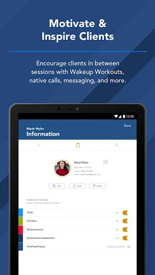 - Keep in touch with your personal trainer via calls, messaging and more.