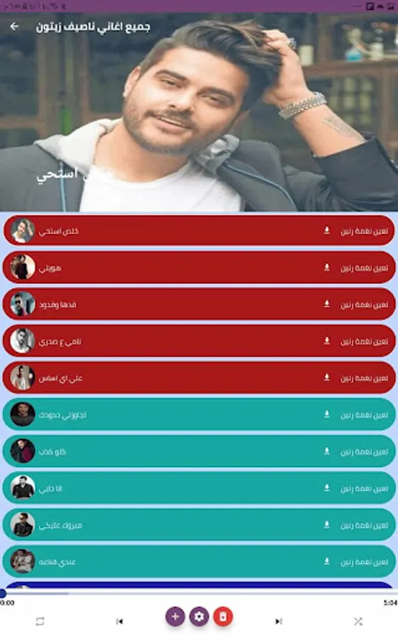 The Nassif Zaytoun songs application contains all the songs you are looking for and is included in the application, allowing the song to be searched in the fastest way, and the songs are downloaded continuously, and the Nassif Zaytoun songs application is automatically updated, and the Nassif Zaytoun songs are arranged in a wonderful and regular way. With the songs of Nassif Zaytoun, wonderful songs and the ease of using the application, the songs of Nassif Zaytoun