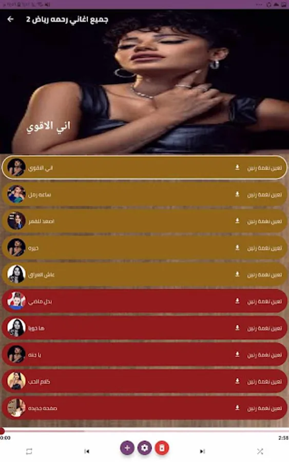 And it is constantly updated firsthand... If you are a fan of Rahma Riyad's songs, do not hesitate to click and download the application and you will not regret it...