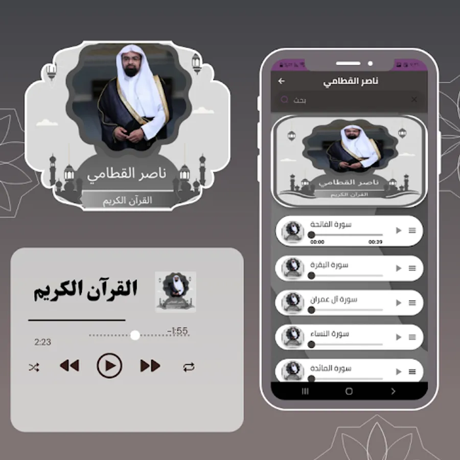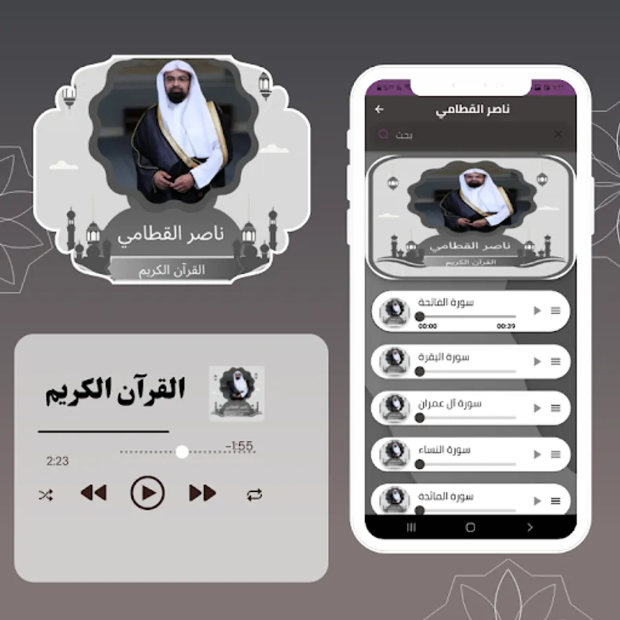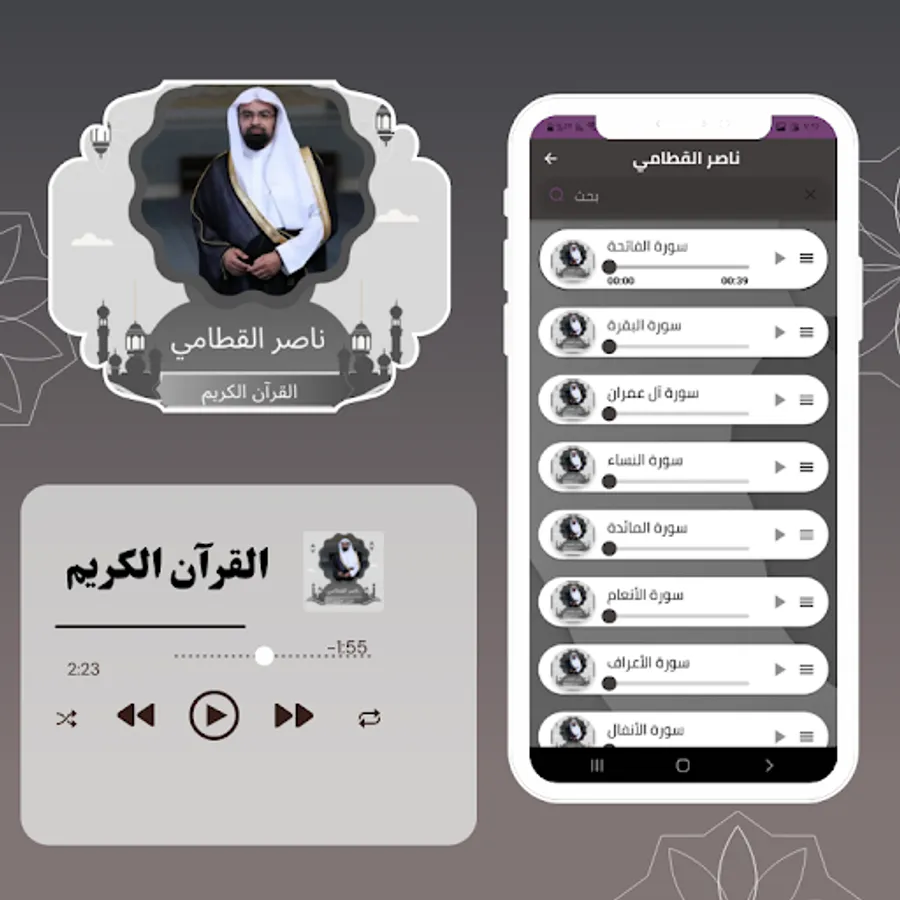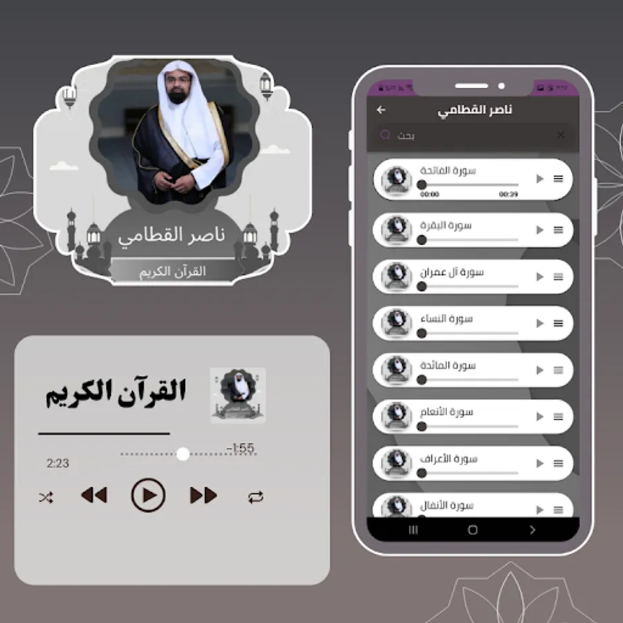 You can apply Nasser Al-Qatami the entire Quran. From hearing the surahs of the Holy Qur’an online all through your tablet or mobile phone with complete ease by downloading one application that contains all the surahs of the Holy Qur’an with the most beautiful sounds, and the application is also characterized as free and supports the feature of downloading the entire Qur’an and storing it on your mobile phone and available for use by everyone in all countries