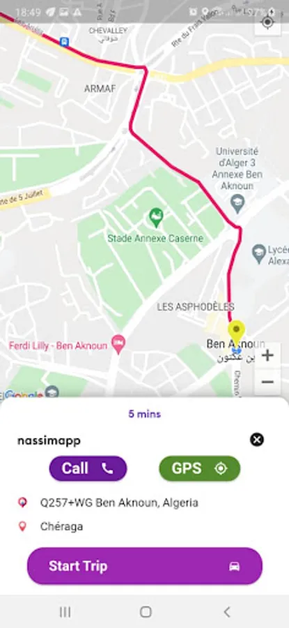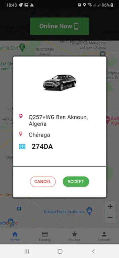 4. All the data relating to your trip (Price, Distance, Travel time, etc.) will be displayed for this request.