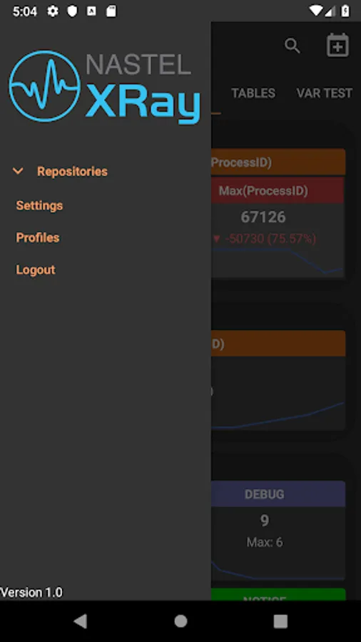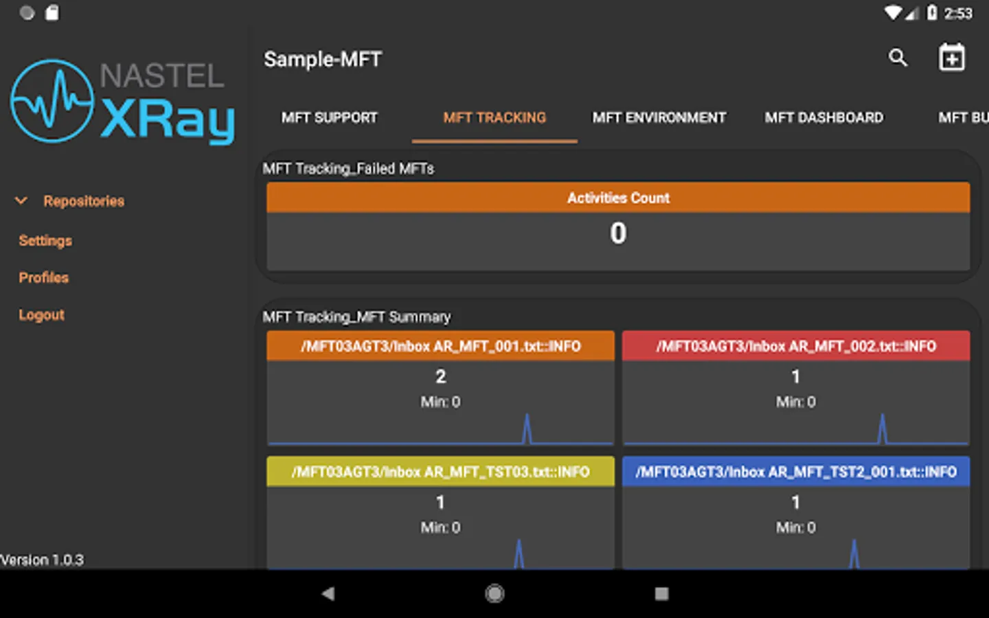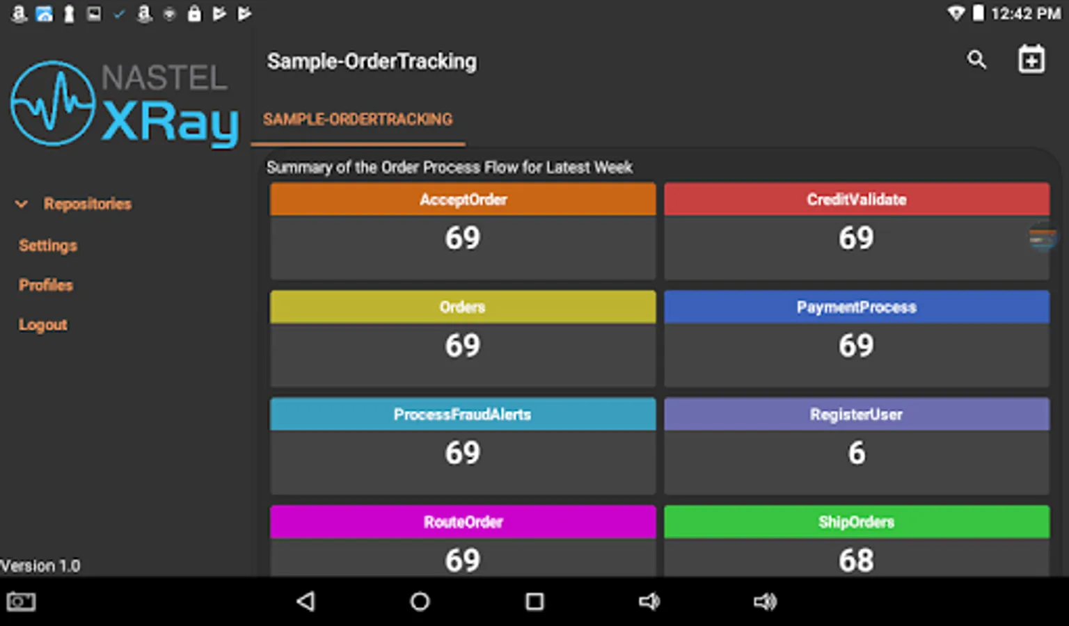 The Nastel XRay app allows users running Nastel XRay in the cloud or on-premise to access their dashboards. The application will show summary data for quick access to key indicators.