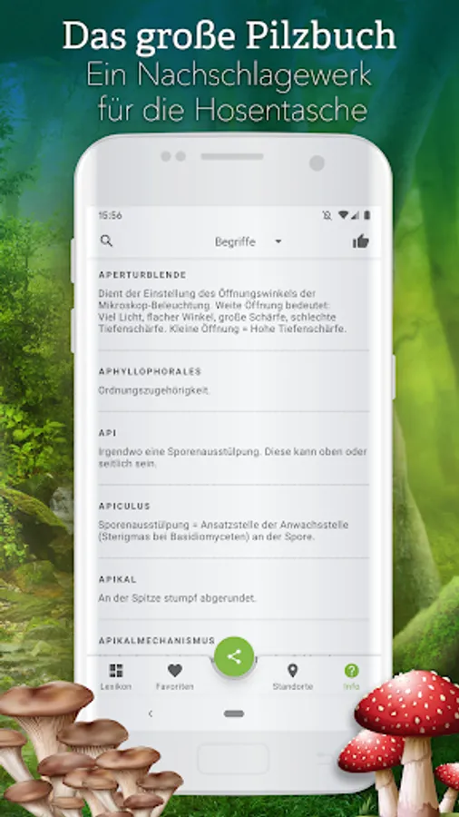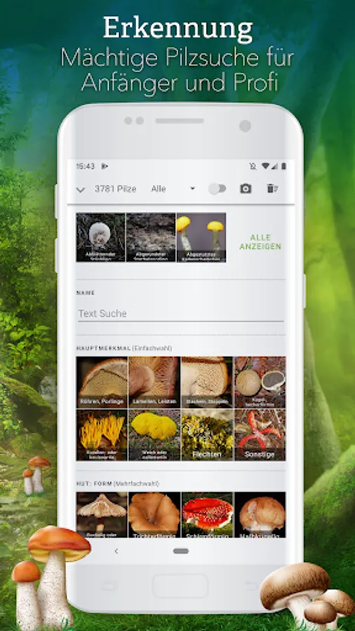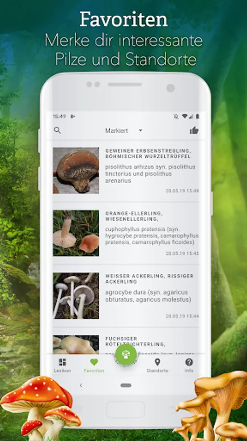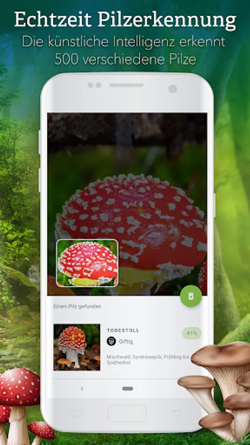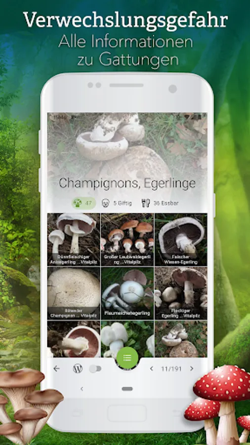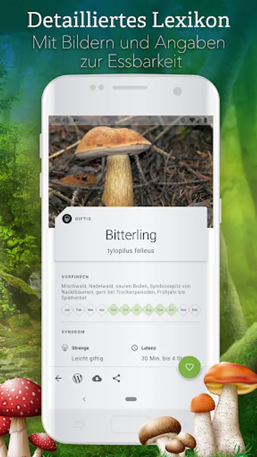 With this app, mushroom pickers and mushroom friends have a helper in their hand, which makes it extremely easy to determine the local flora of mushrooms. With over 3,700 mushrooms in the database, the most important mushrooms in Germany, Switzerland and Austria are covered.