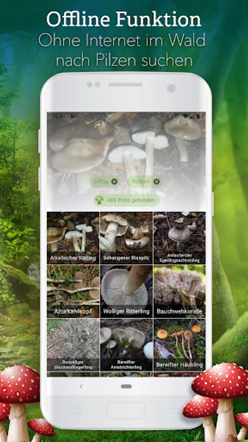 The app is easy to use and replaces several mushroom books at once. It saves you the laborious paging through the unwieldy identification books and offers many ways to identify a fungus. The app allows a comprehensive determination of mushrooms based on many detailed descriptions of each fungus and more than 30,000 photos. In addition, more than 13,000 images can be downloaded for offline mode.