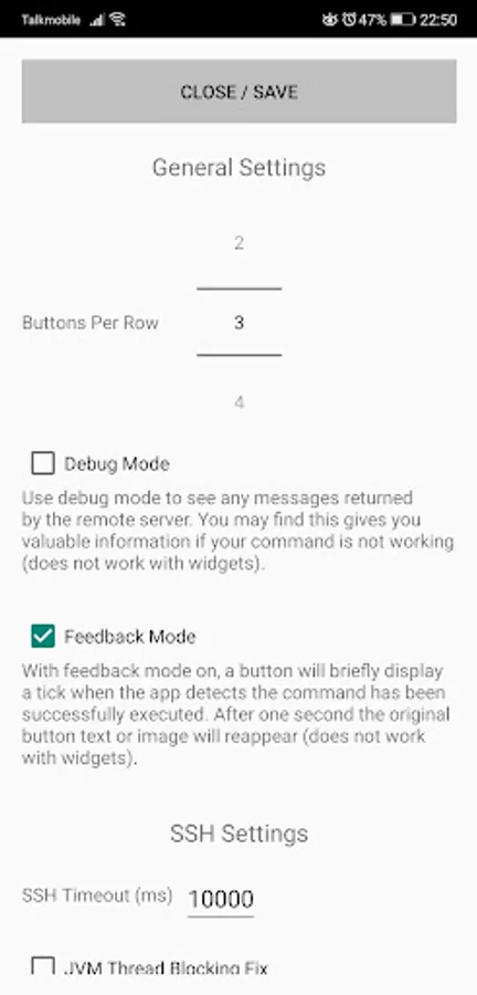 Send commands to your PC from the app by customising the app settings which can include everything from the name of the button to the command you are sending. Switch on debug mode to see the output from the remote server - great for troubleshooting.