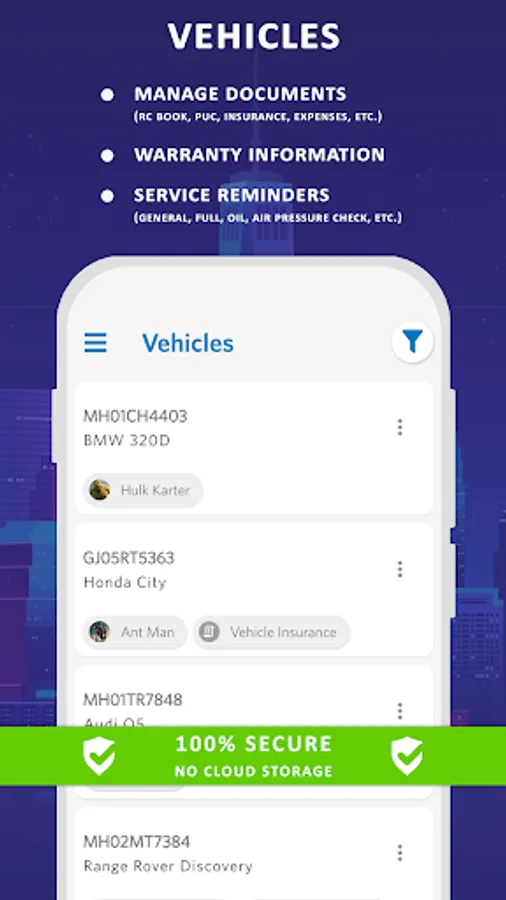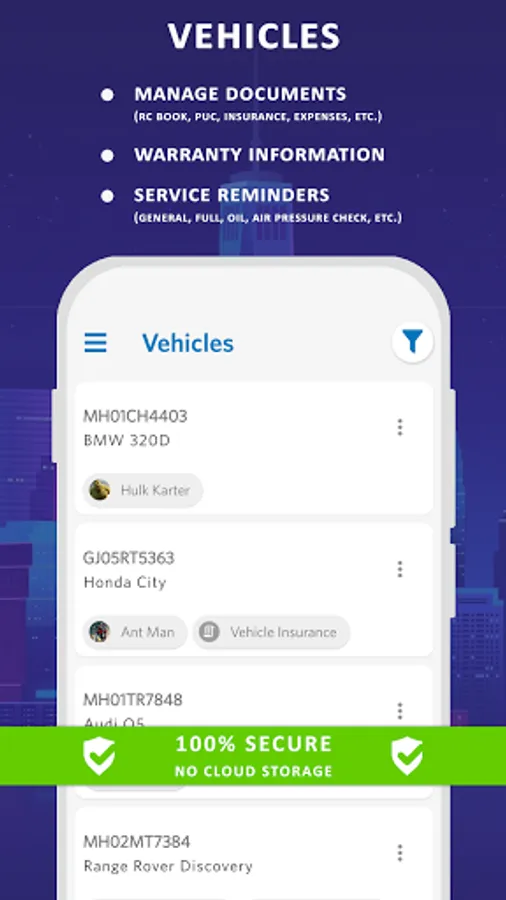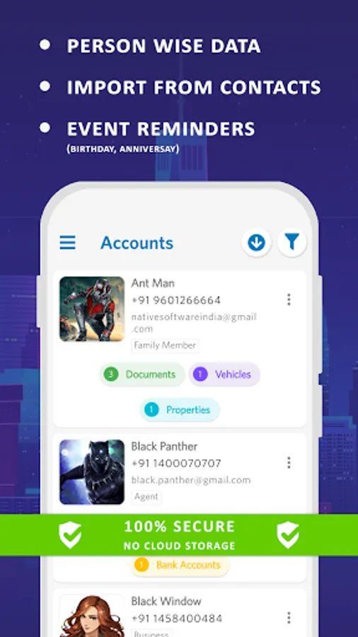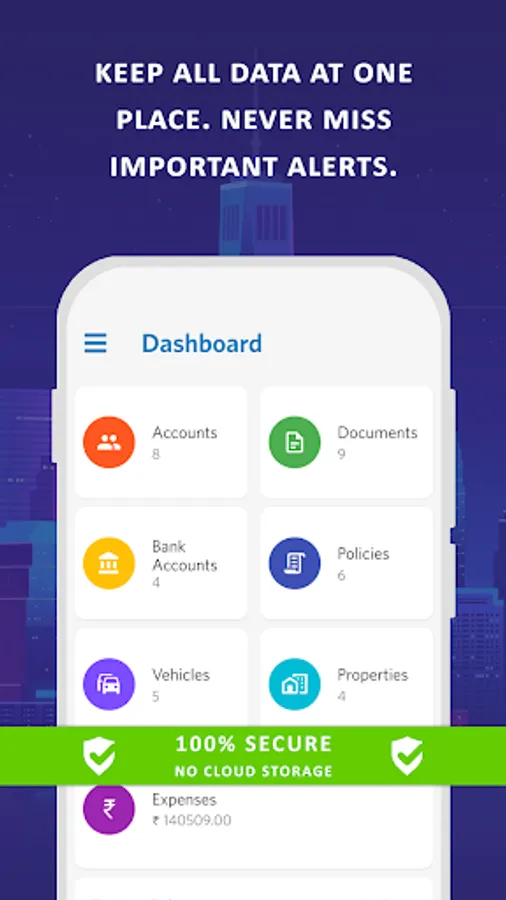 -> Easily manage bank details, property details, vehicle and vehicle service details, etc.