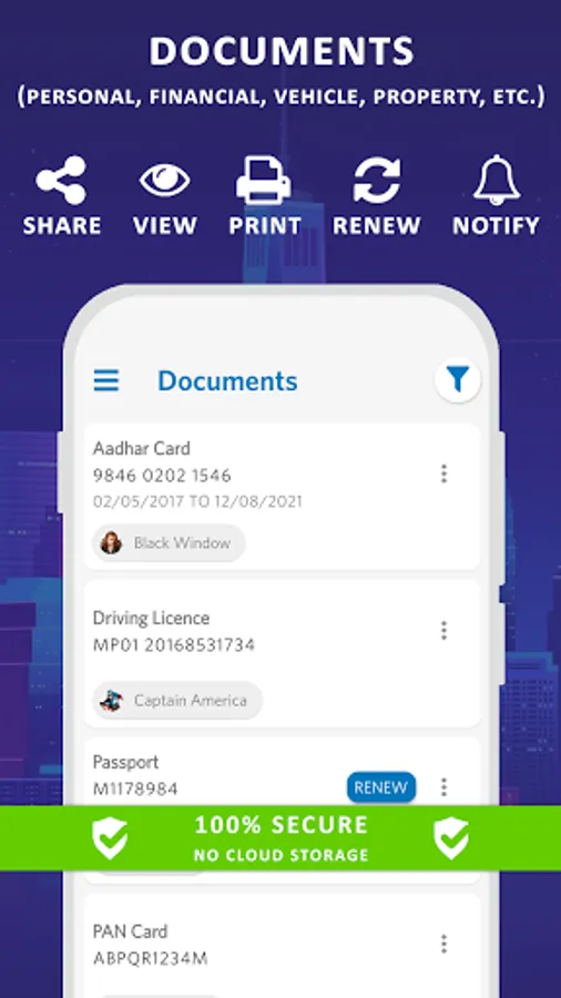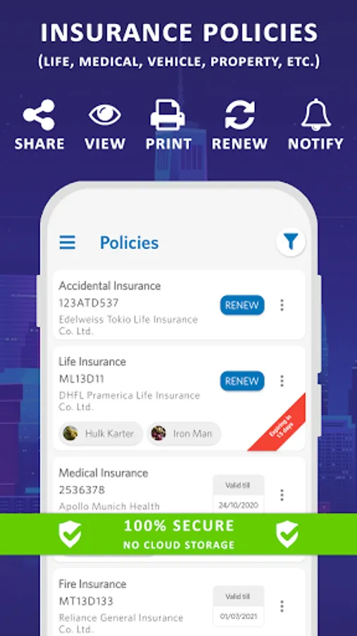 Secure Wallet is a complete solution for managing personal information, it also allows users to keep their personal data up to date with timely reminders. It also allows users to share their data. Secure Wallet allows users to customize notification time and reminder period. It also allows users to add other types of documents, policies, etc.
