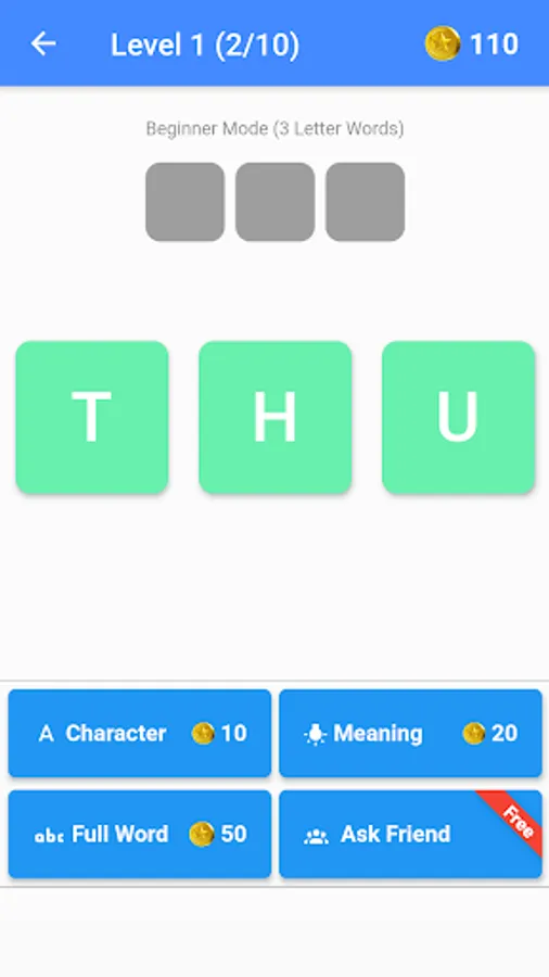 Once you make the right word it will show you, score screen with the meaning of that word. This will help you to learn more about that word.
