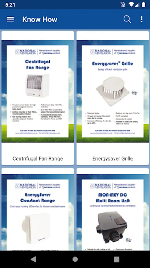 The ‘Know How’ app is the single destination where electrical wholesalers, contractors, and self-builders can have access to National Ventilation’s product information. The app showcases National Ventilation’s product and technical information to provide you with inspiration and information for your projects.
