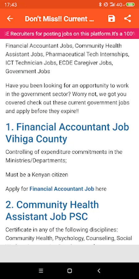 1. NatakaKazi Kenya & Tanzania allows job seekers to view the latest job posts and check more details of a particular job.