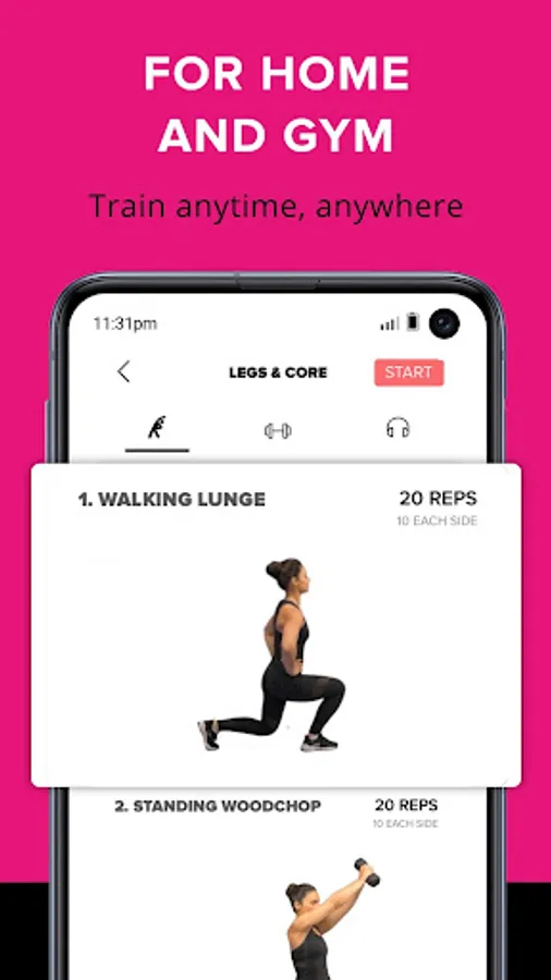 • Abs, legs, core, arms, back, chest, butt and full body workouts