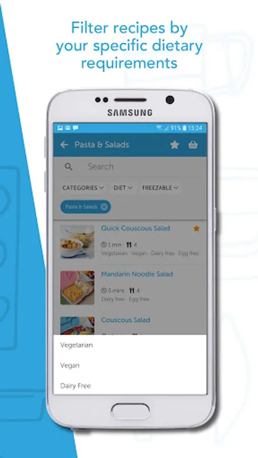 * Filter recipes by your specific dietary requirements (vegetarian, vegan, dairy free and egg free)
