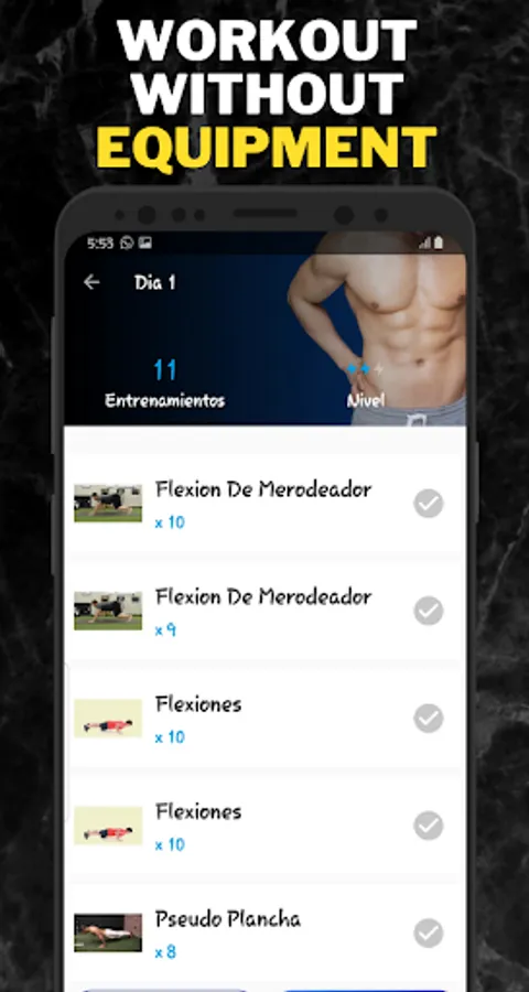 The application will guide you through each of the corresponding exercises for each level, such as their execution and duration times. It is true that the bench press is a great exercise, but we can also develop chest muscles without using weights, following the correct exercises, correct movements and in the indicated order, there are even some gyms today that They use this type of program.