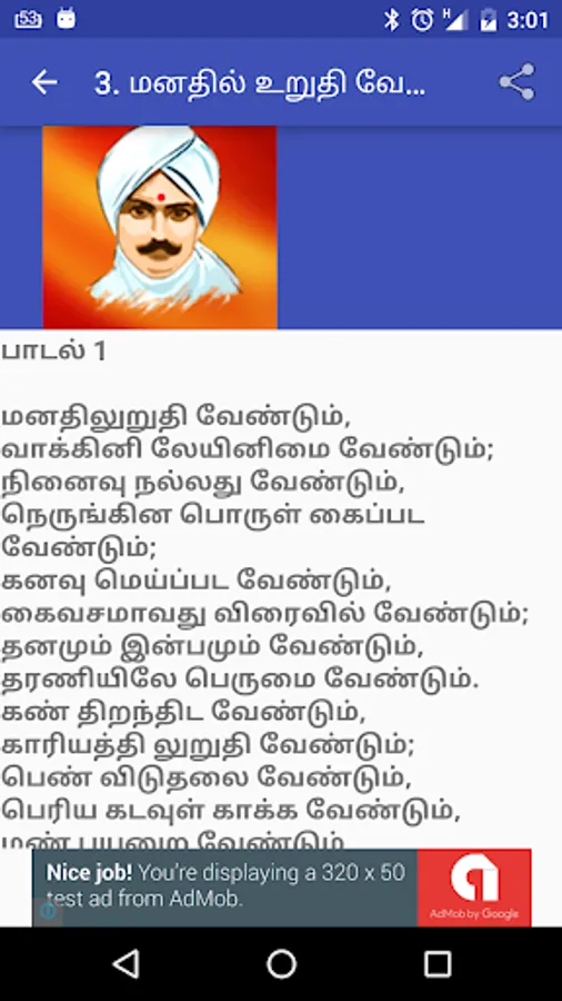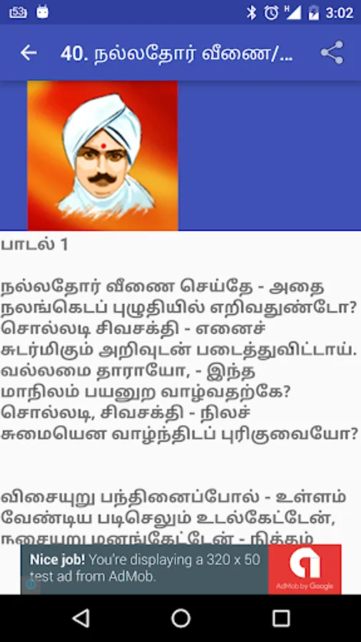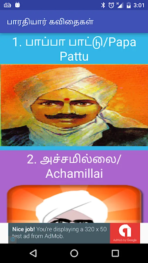 பாரதியார் கவிதைகள் - This app is dedicated the great poet Mahakavi Bharathiar. The best of poets who will ever continue to inspire millions. This app is small attempt to digitize 50 of his poems. You can read, enjoy and share the same with your friends.