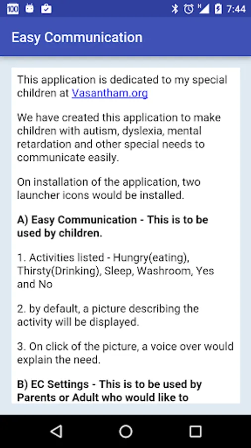 We have created this application to make people with autism, cerebral palsy, dyslexia, intellectual disability and other special needs to communicate easily.