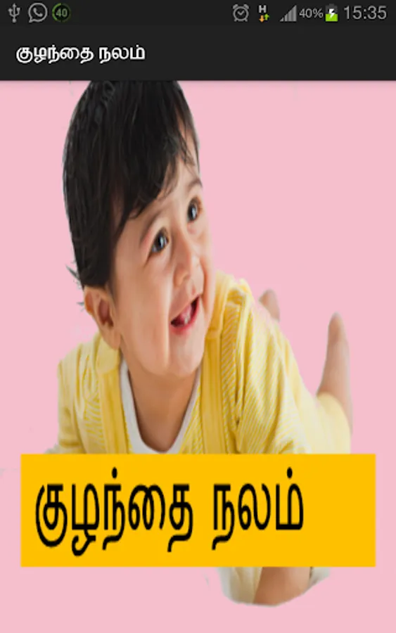 This app covers, Baby wellness tips, Baby Bathing tips, Baby tips, Kuzhandhai nalam, Kuzhandhai valarpu, Baby food tips, Baby food, Baby Home remedies, Tamil apps, Paati vaidhiyam, Paapa Nalam, Kuzhandhai Unnavu