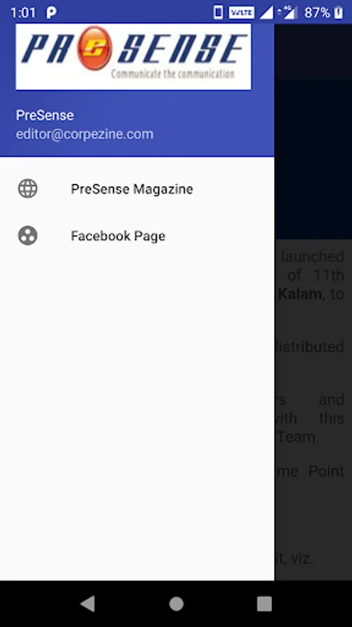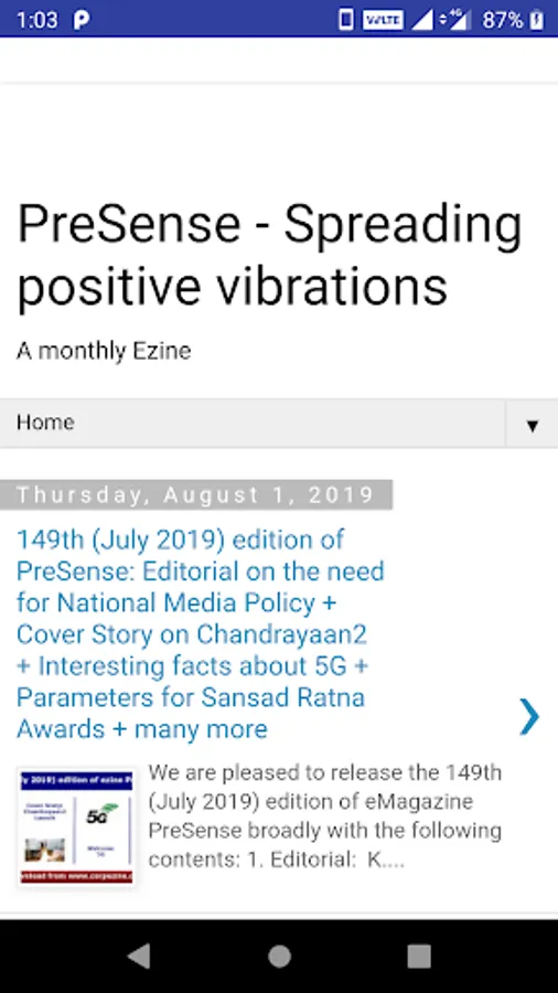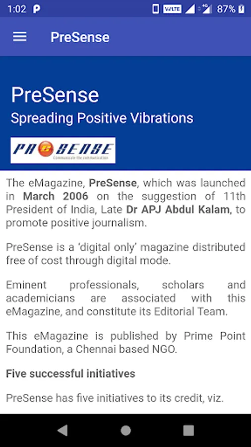 The eMagazine, PreSense, which was launched in March 2006 on the suggestion of 11th President of India, Late Dr APJ Abdul Kalam, to promote positive journalism.
