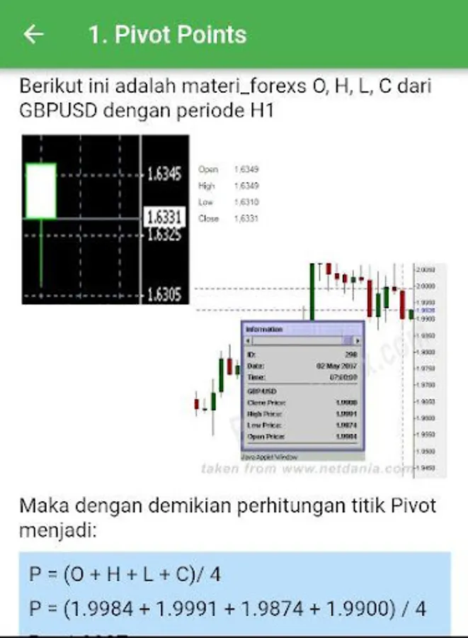 An application that contains forex learning materials from basic to professional material, the material in this application is divided into 4 learning classes: