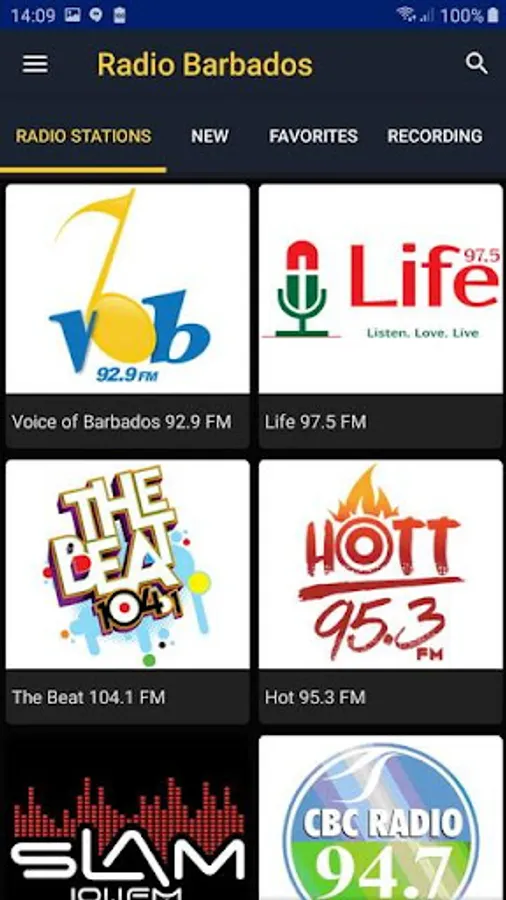 Listen to the radio stations from the Barbados. Internet is required for listening. The application has 14 radio stations: Voice of Barbados 92.9, Life 97.5, The Beat 104.1, Hot 95.3, Slam 101.1, CBC Radio 94.7, Q in The Community 100.7, The One 98.1, CITA Radio 90.1, Y 103.3, Destination Caribbean FM, Evah Blaze Radio, NBG Radio 104.7, Capital Media HD 99.3