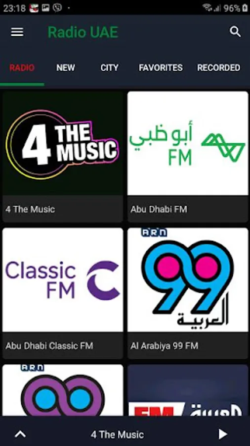 Listen radio stations from the United Arab Emirates on your Android phone. Internet is needed. The application has 51 radio stations aligned in alphabetical order: