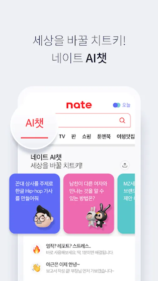On 'nate' Application you can check all the mobile services of nate and use the various and fun contents firsthand.