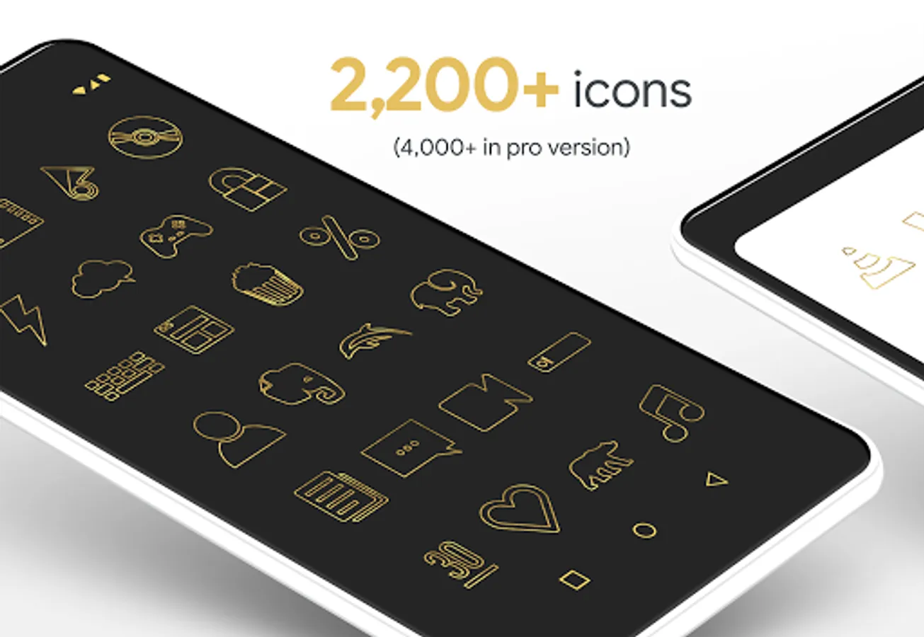 • 2,200+ hand crafted gold texture HD Icons with many variations of default gold icons such as phone, contacts, camera, etc. (4,000+ in Pro Version)