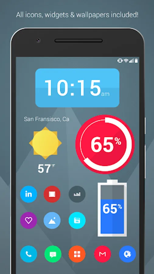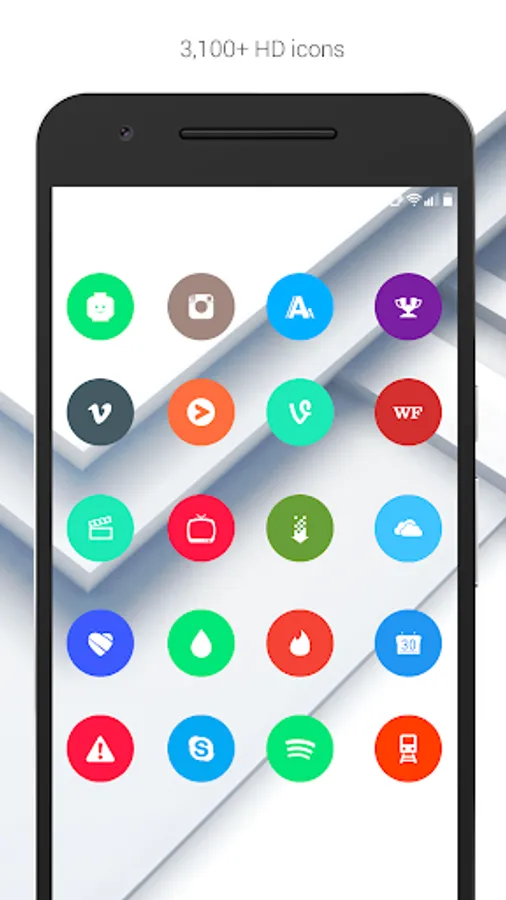 • 3,700+ hand crafted flat, clean & simple colorful flat HD icons with many variations of default icons such as phone, contacts, camera, etc.