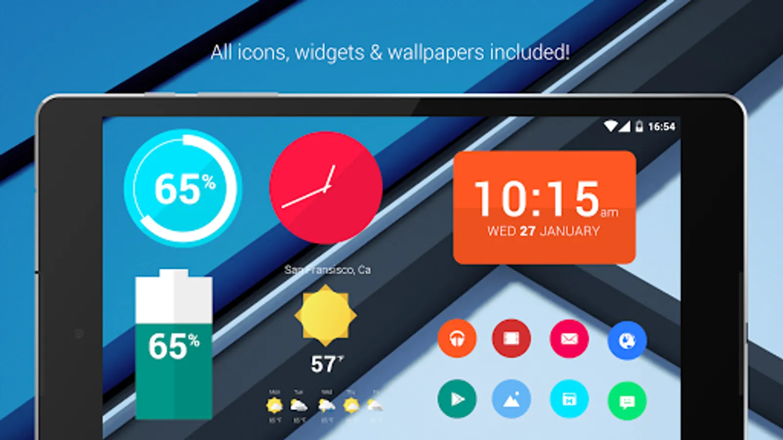 Material Things (pro version) is an icon theme for your android phone or tablet inspired by material design. Color up your display with some simple, clean material Icons. Included with the hand-crafted icons are matching wallpapers, and widgets for clocks, battery & weather. Widgets offer color, size, and font customization and over 200 custom made and hand-picked wallpapers included.