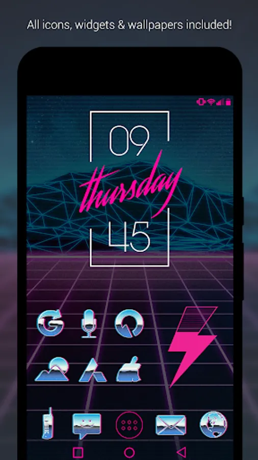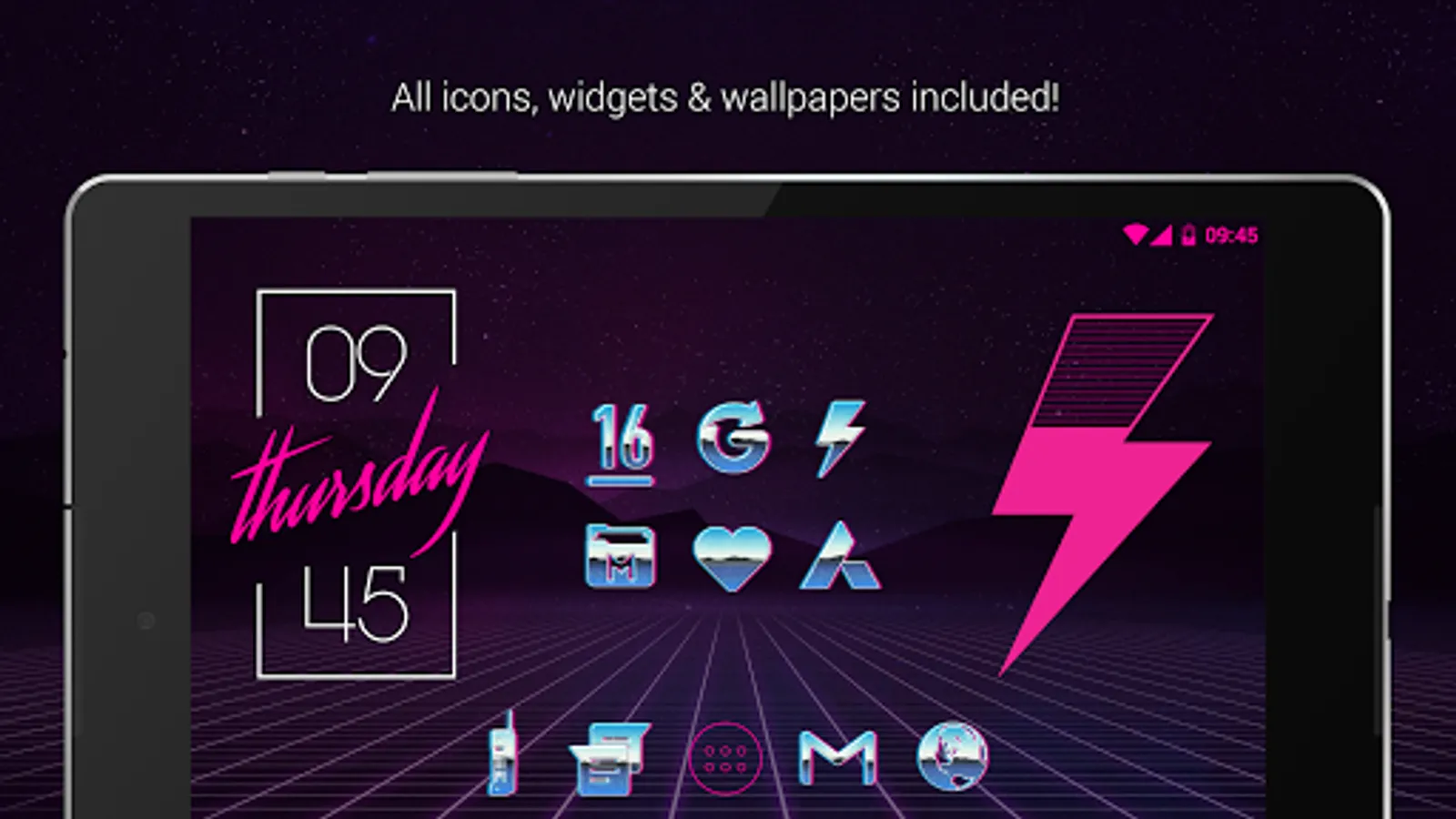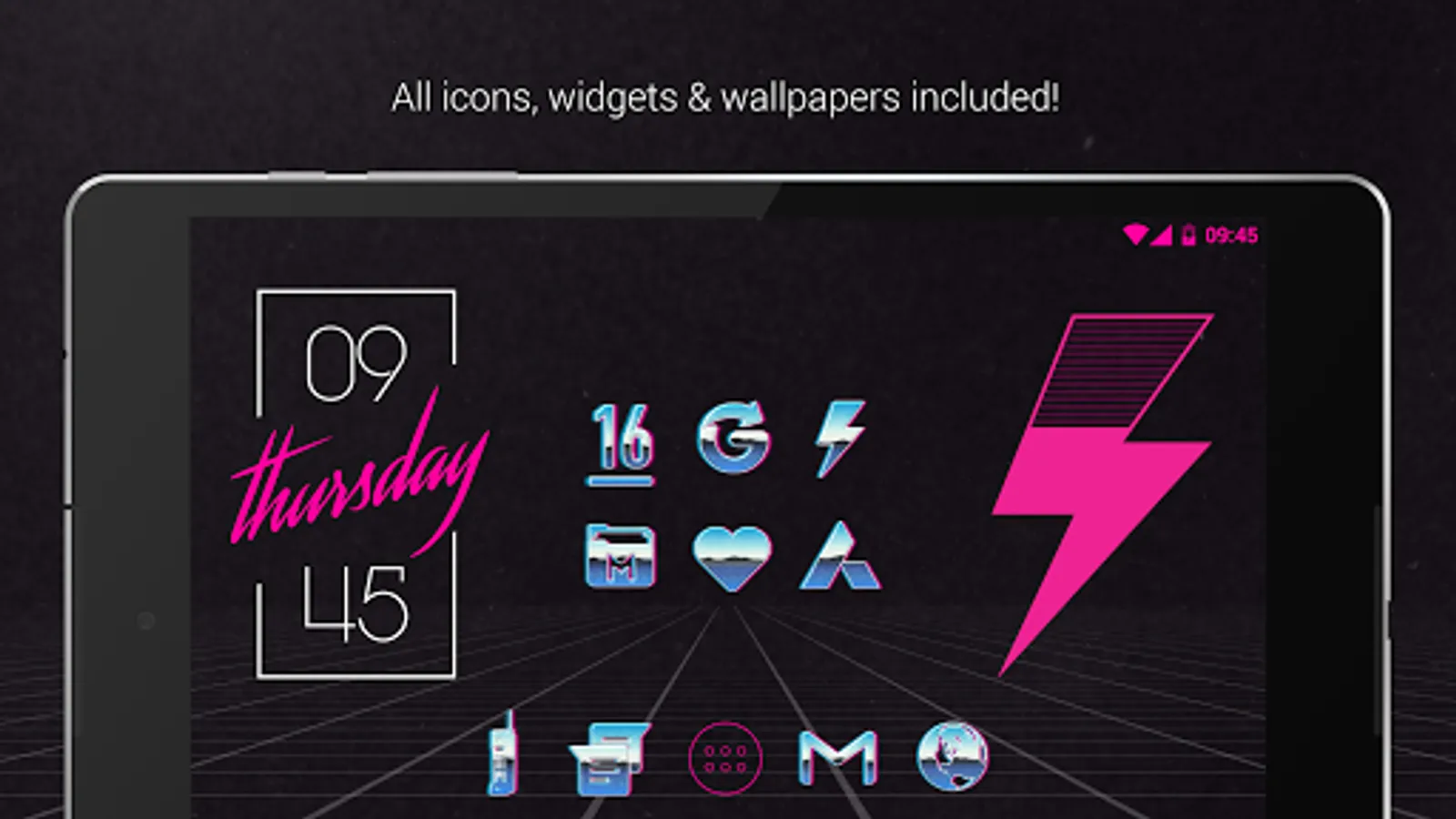 • Chrome, retro and neon icons work best with dark futuristic 80's wallpapers.