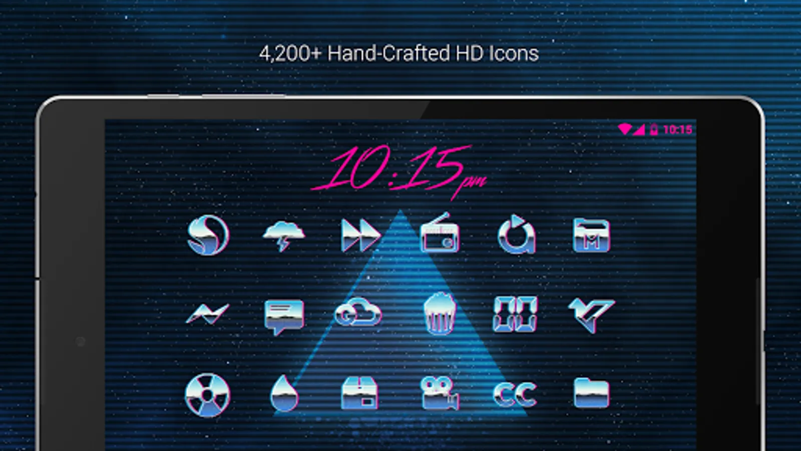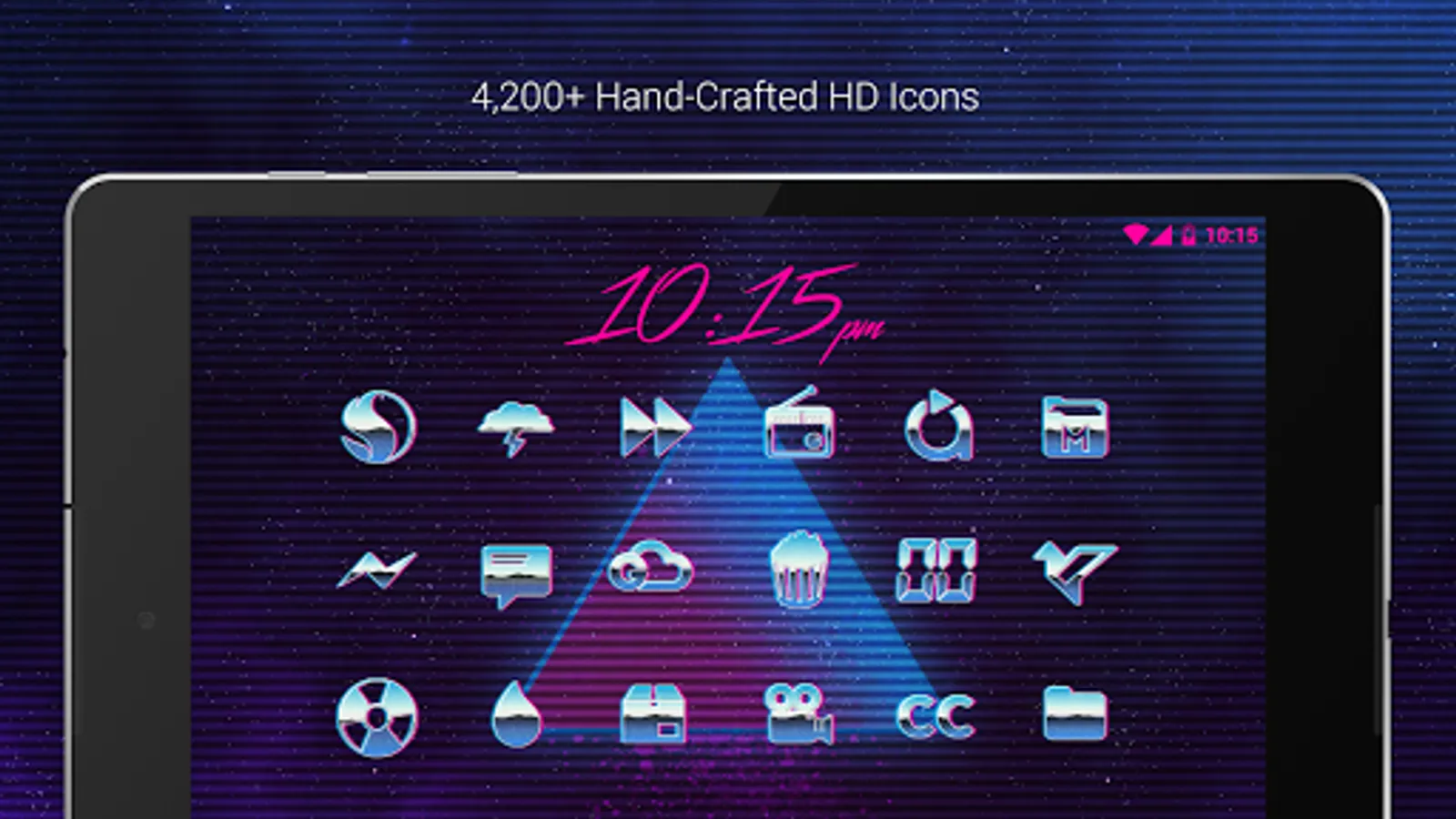 • XXXHDPI high definition retro, chrome and neon icons included for super large HD screens with many variations of default 80's icons such as phone, contacts, camera, etc. All Icons are 192x192