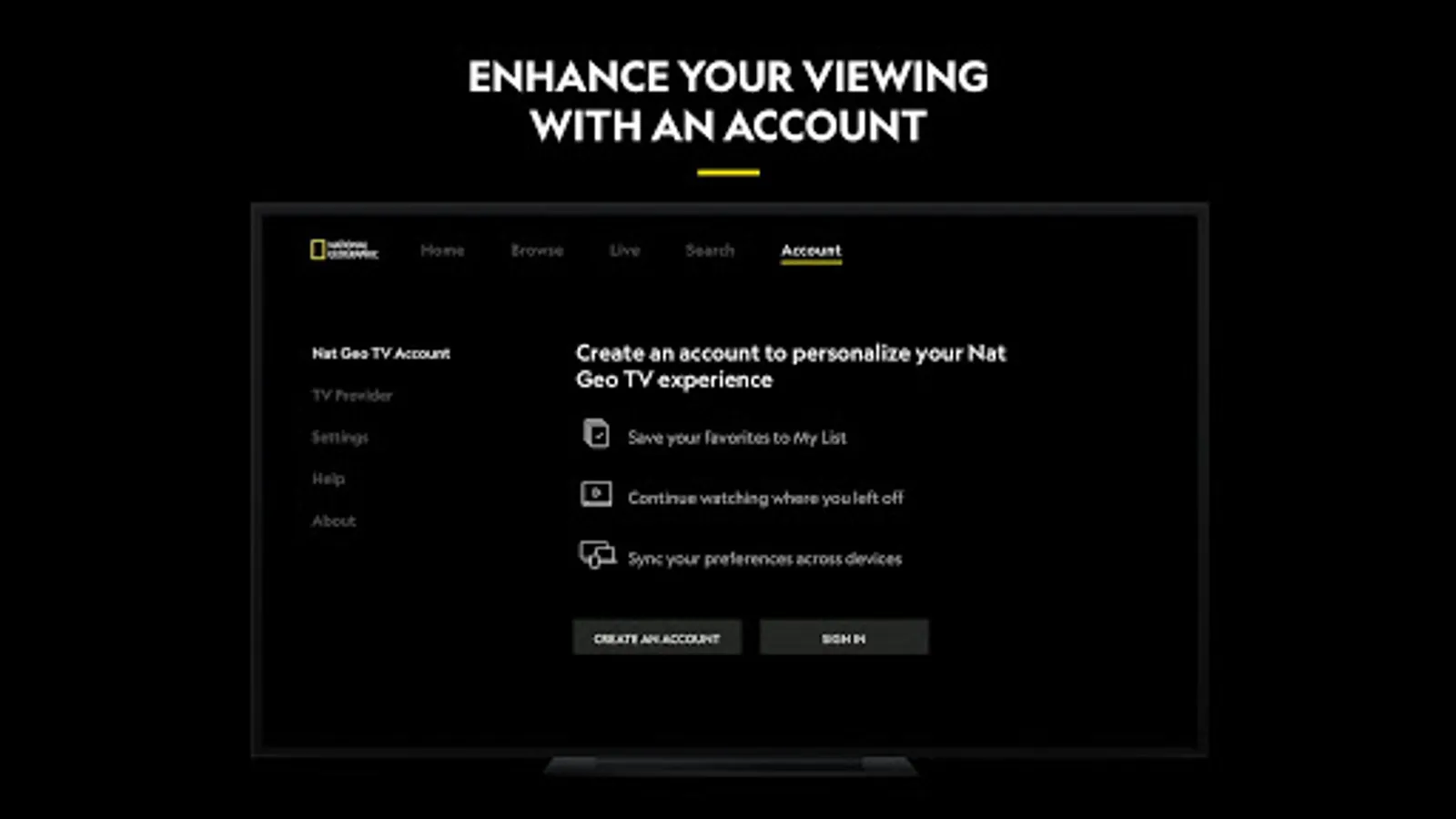 NAT GEO TV ACCOUNT - Enhance your viewing experience by creating a free account to receive a personalized home screen based on viewing behavior, save your favorite shows, and more!