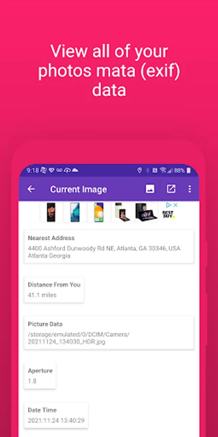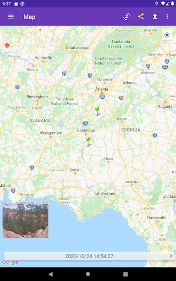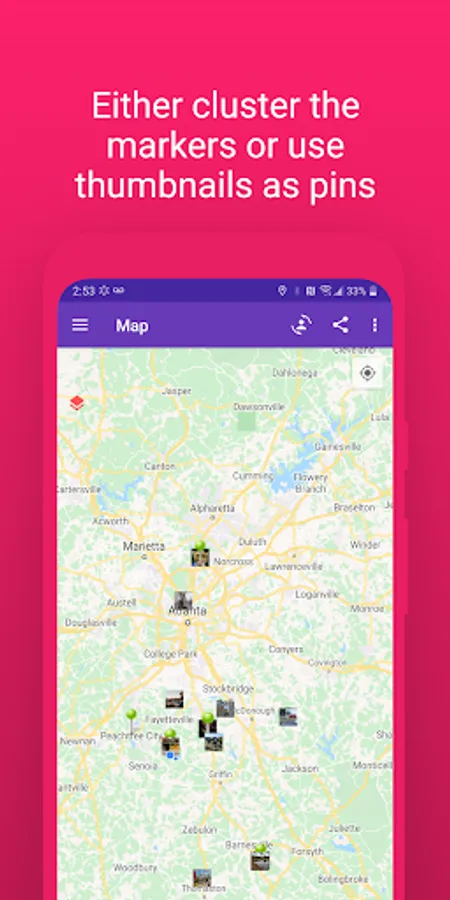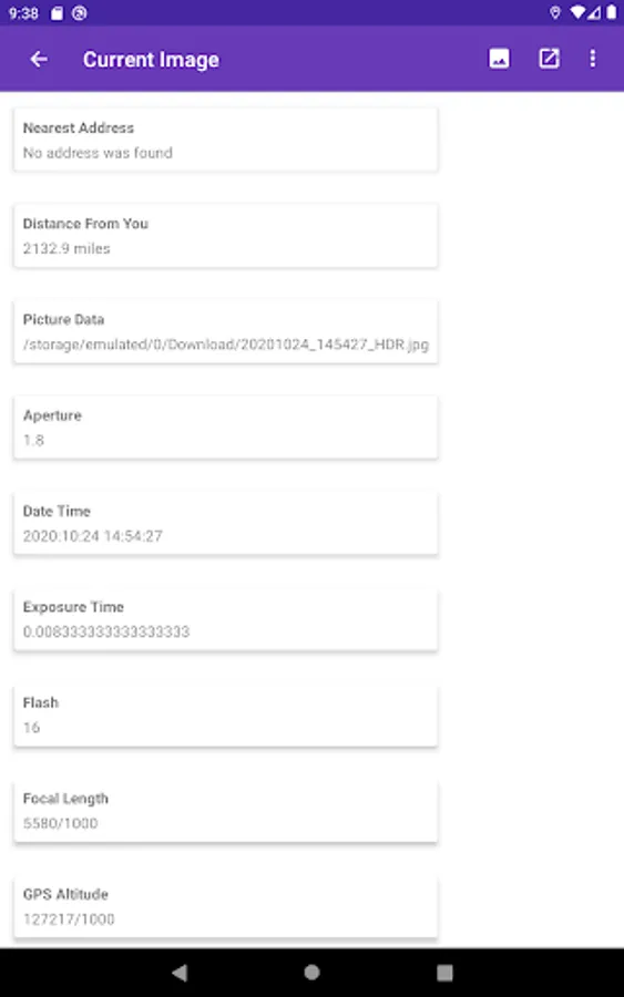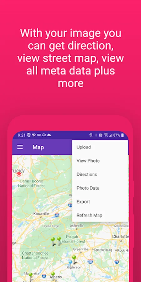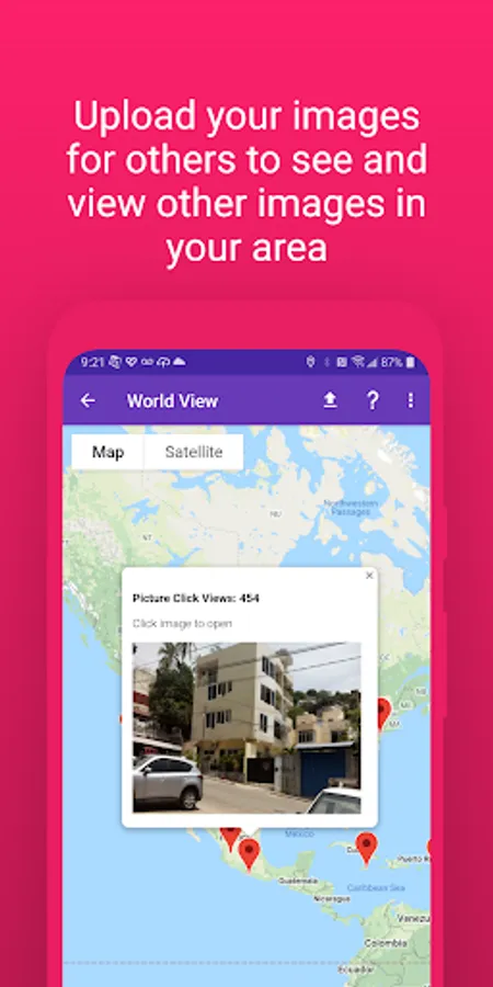 Your location geo tagged images and videos will be displayed on a map to easy find by location. View your image, get direction to that image location, view the street view or see the meta data of the image.