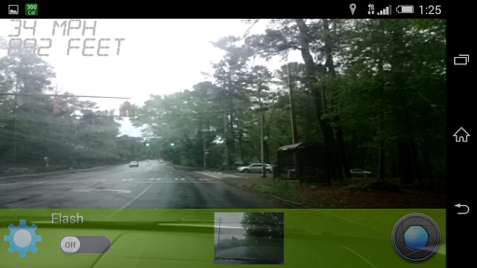 A camera that adds your speed and altitude on the picture. Take a photo and your speed with your altitude will be displayed on the picture. Use the setting menu to change between metric and US units. The side panel will change color depending on your speed. After an image is taken you can open the image through the thumbnail.