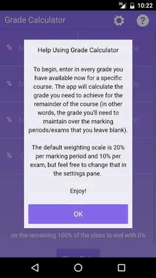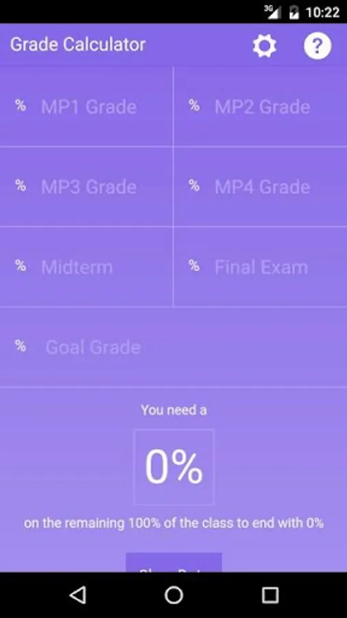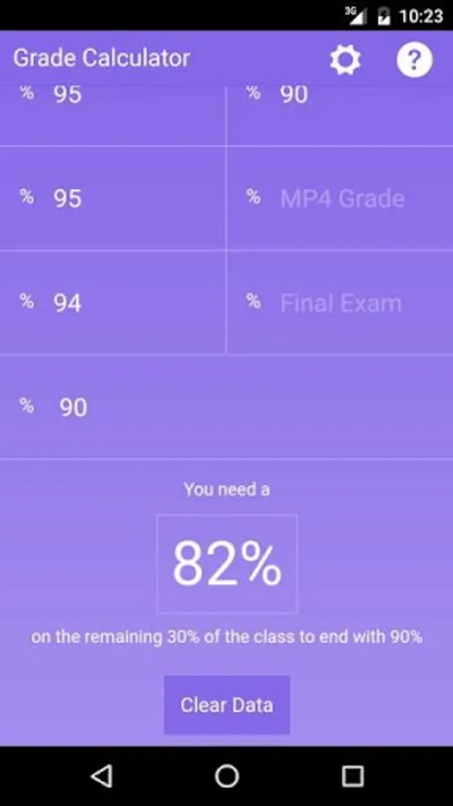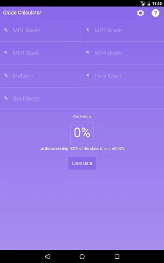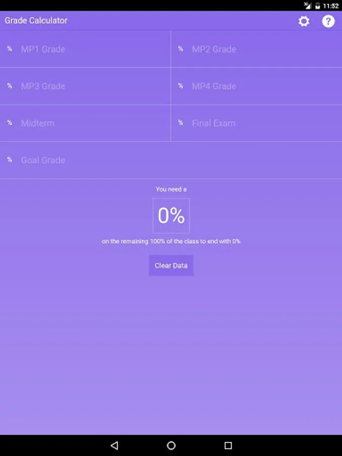 Do you need to maintain a certain grade to pass a class? Or do you want to see what you need to end with an A? Use the Final Grade Calculator to determine what grades you need for the rest of the year to reach a certain goal grade. With an easy-to-use interface with support for custom weighting, the Final Grade Calculator will definitely find a special place on your phone. Download the Final Grade Calculator today!