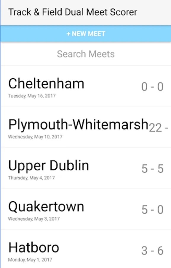 This app scores dual meets in track and field. It allows you to save multiple meets and input names, times, and teams quickly. It offers so much more than the simple paper, pencil, and clipboard approach.
