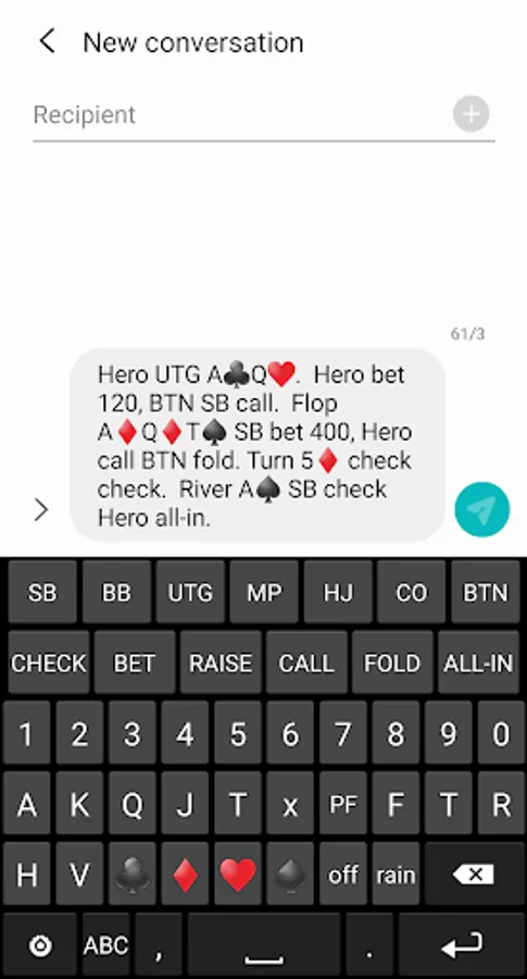This keyboard is by usable by all Android 4.4 (KitKat) and above. Poker Hand History Keyboard is very versatile and can be used for messaging, email, WhatsApp, Instagram, etc.