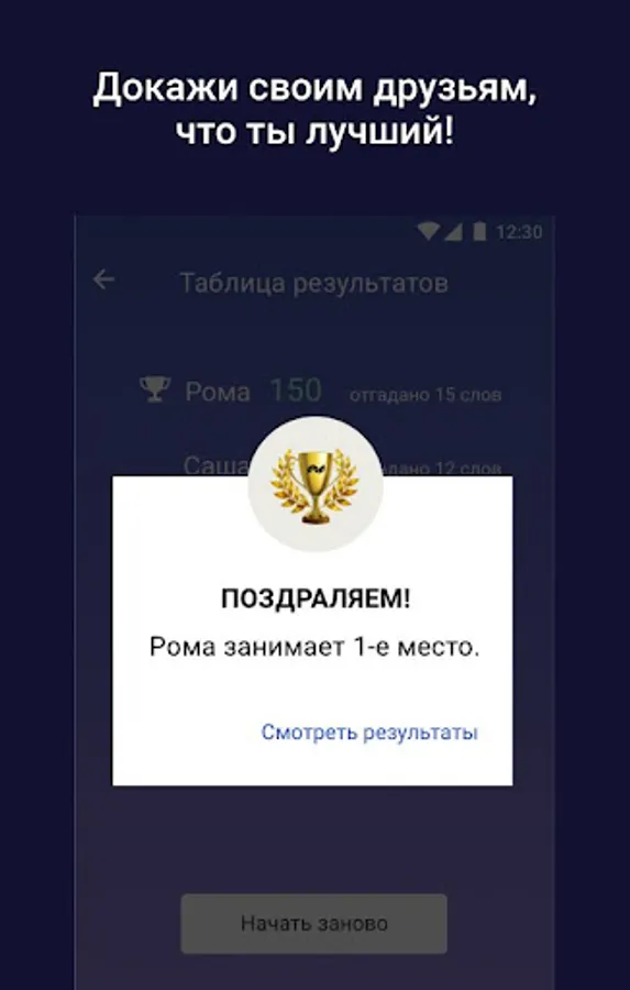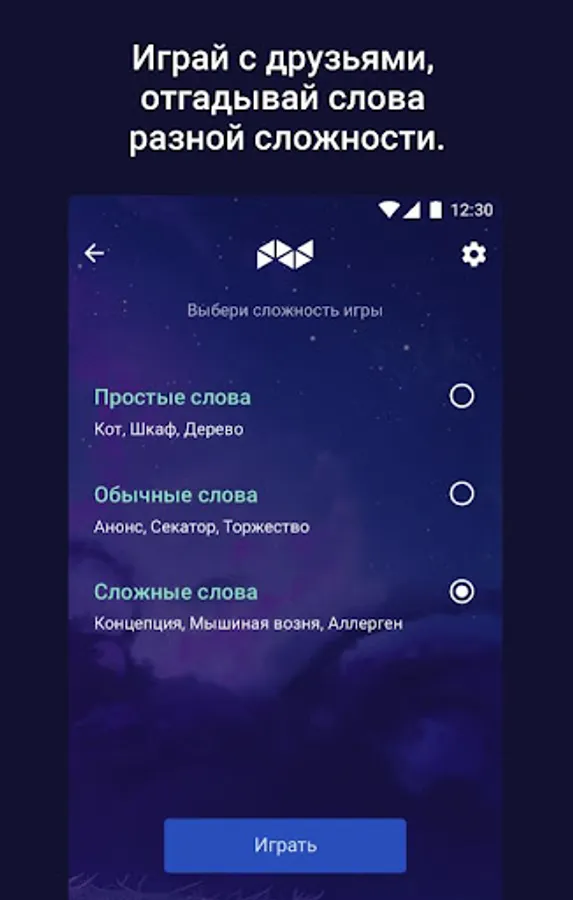 A game for friends. Those who want to fool and have a great time. The goal of the game is to score more points. The participant scores with the correct guessing of the word or in the case when the opponent has guessed the word you have envisioned. Players are invited to make a call in one of three ways. The maximum number of participants is 6 people. Check with whom of your friends you will be able to achieve the best level of understanding.