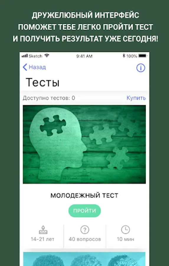 "Psychological test" will help to determine the type of your personality and will give important advice for the realization of your strengths. Are you young and looking for yourself in life? Our application will help you determine your life goals and tell you where to start. The application presents an opportunity for young people to pass the test in two different age categories, for both boys and girls.