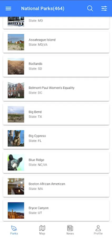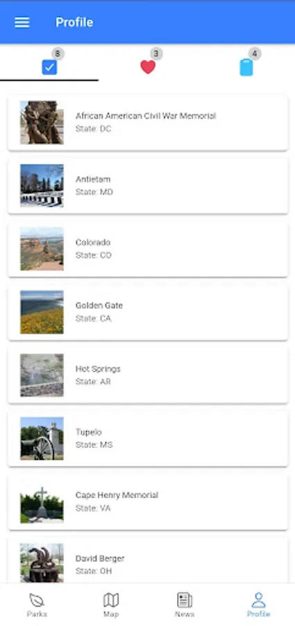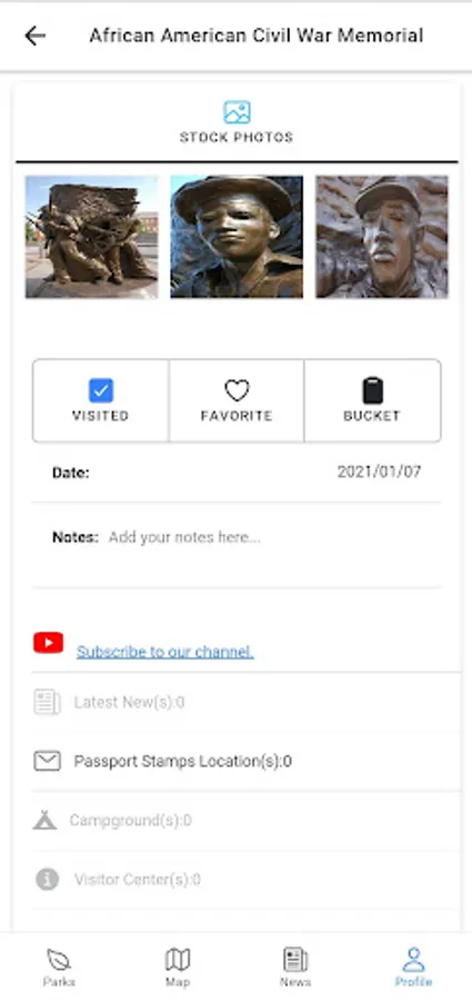 - Ability to add a date when the National Park is visited. This will help you keep track of the date you visited the park.
